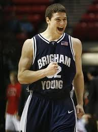 I say that without embarrassment or reservation. He is amazing. When I first moved back to Utah, one of the first social things I did was go up to Salt Lake to watch BYU play Utah. I watched him hang 32 points in the first half, including a half-time buzzer beater from about two steps in front of the center line. Maybe you've seen it. Oh you haven't? Well here's the youtube link: